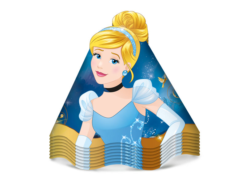 Chapéu de Aniversário Cinderela em formato cone, em cartão duplex.